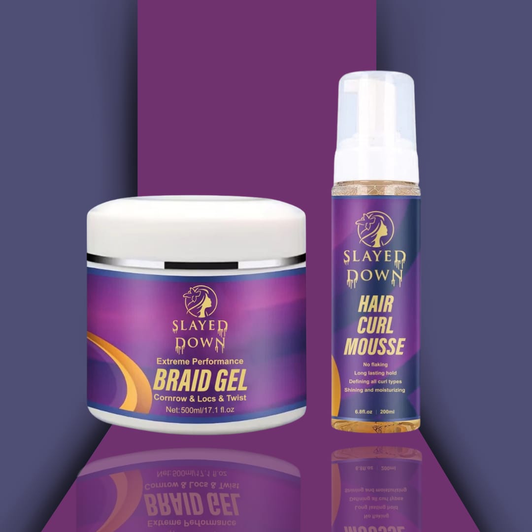 Slayed Down™ Braiding Gel (17oz/500ML) is a versatile hair product designed to cater to all hair textures and styles, including braids, twists, and locs. This gel is suitable for use on both natural hair and hair extensions, providing a strong hold without leaving behind flakes or residue. Here are the directions for using Slayed Down™ Braiding Gel: